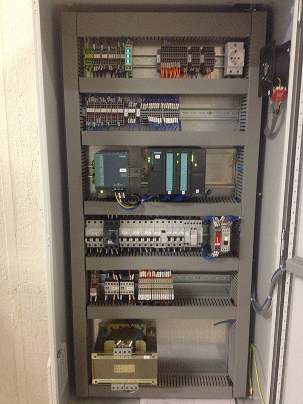 – Controllore PLC marca SIEMENS serie S7-300, con interfaccia: 24DI + 16DO + 4AI + 2AO,