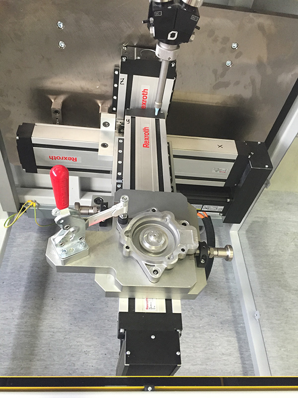 • L’impiego di tre assi X,Y,Z Bosch Rexroth controllati, completi di azionamenti ed interfacce meccaniche perfettamente collegati tra loro;