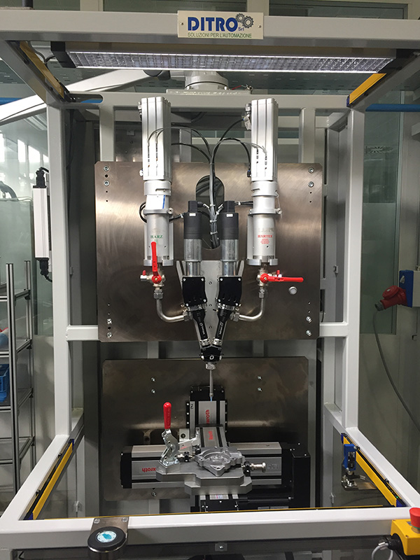 Scopo della fornitura è la progettazione e costruzione di una stazione automatica per la dispensazione di pasta termica su eGP mediante la implementazione di tre assi Bosch Rexroth comandati elettricamente.